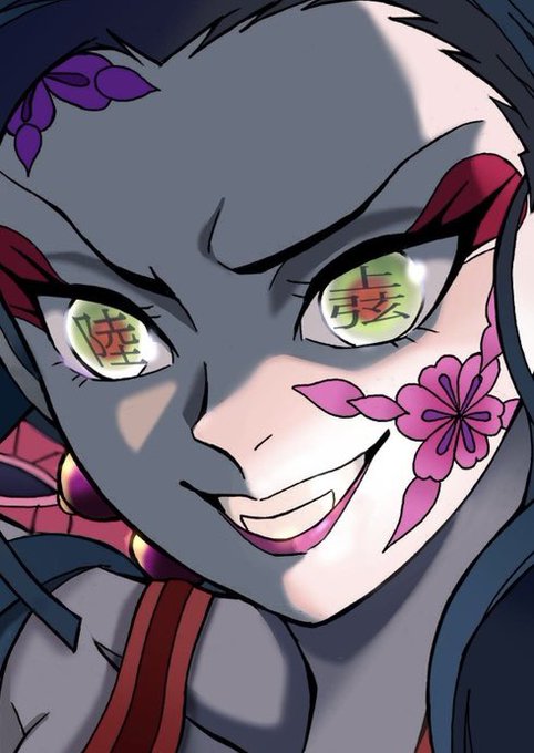 かわいい笑顔 健康的な歯並び😊 先日描かせていただきました #鬼滅の刃遊郭編 の #堕姫 さん💕 三たび投稿😆 今日はアニメ第4話ですね #鬼滅の刃ファンアート #鬼滅の刃 #絵師さんと繋がりたい #アトリエの系譜