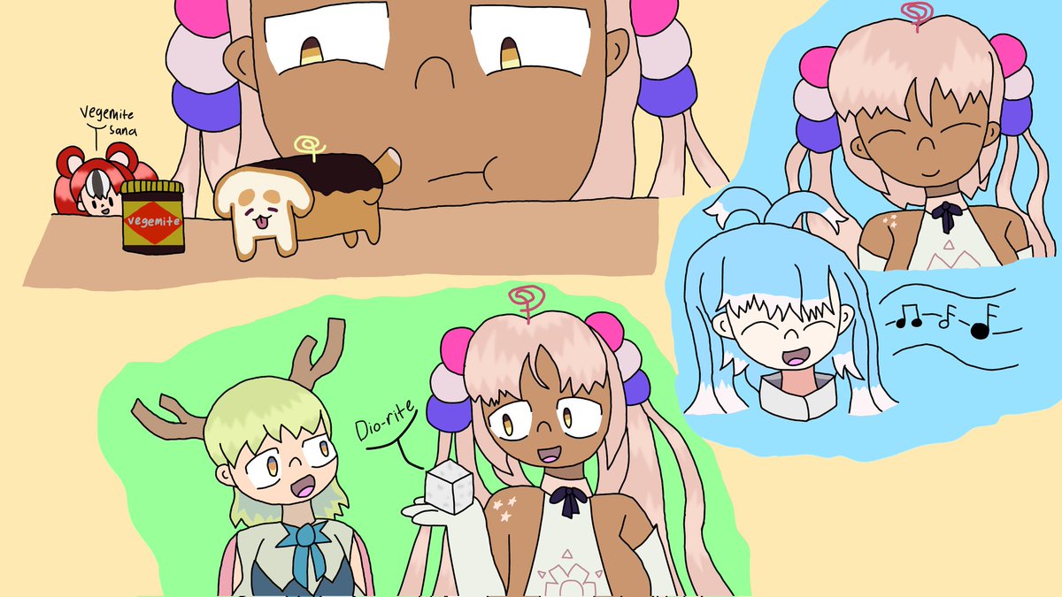 Sana's collaboration with the other members of hololive #AeruSeni #galaxillust #illustraybae #FineFaunart