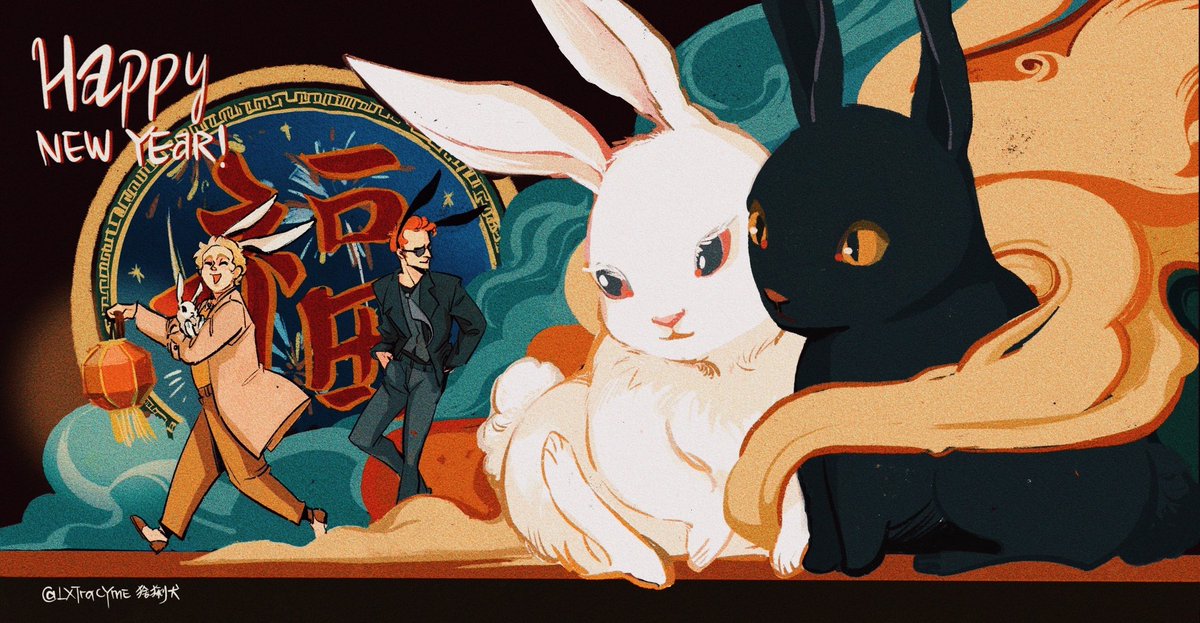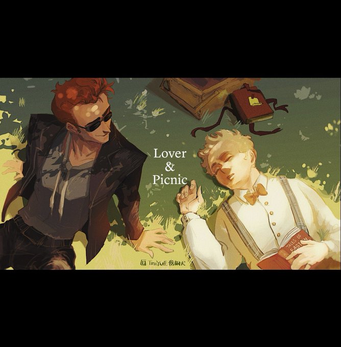 Crowley thinks Aziraphale doesn’t know it’s Chinese Valentine’s Day and asks him out for picnic. Aziraphale knows. #GoodOmensFanArt #Crowley #Aziraphale