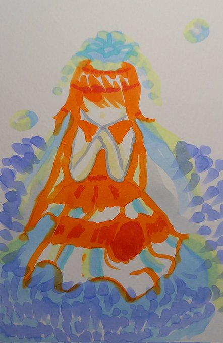 0 4 百均画材をメインで描いた 2時間以上余裕でかかったかな…… 超楽しかった! #イラスト #水彩画 22/07/09 21:44