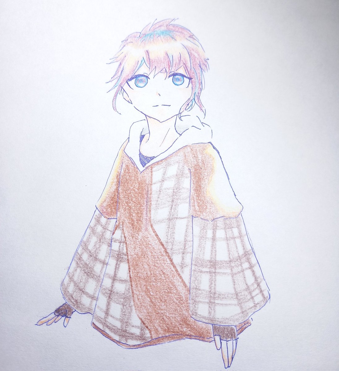 #イラスト #色鉛筆画 久しぶりに色鉛筆&チェック柄挑戦
