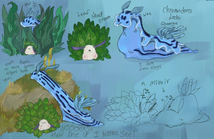 Sea slugs go on adventures together UNTIL SOMETHING EATS THEM [#dnffanart #georgenotfoundfanart #dreamfanart ]