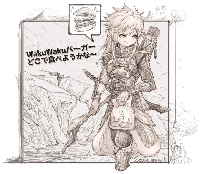 ペン画風イラスト第三段! エルフさんがランチする場所を探してるの巻 ワクワクバーガーってのは、現実で言うマックみたいな? メイキング動画は近日youtubeでアップしますよ~!お楽しみに! #梅雨の創作クラスタフォロー祭り #ペン画 #イラスト練習中 #絵柄が好みって人にフォローされたい #線画
