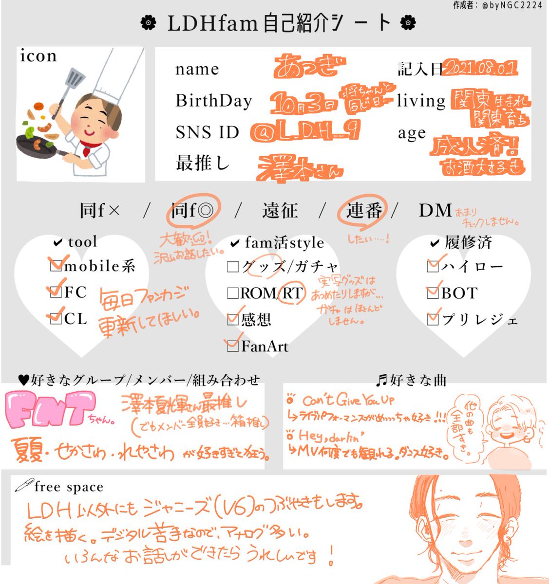 自己紹介シートお借りしたので、繋がりたいタグも失礼致します。 🌻🦩RT、♡どちらも巡回いたします🌻🦩 #フォロワーさんのフォロワーさんと繋がりたい #ldh絵描きさんと繋がりたい #LDHfam自己紹介シート