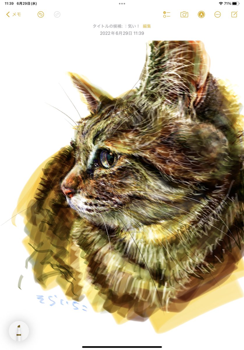途中経過 iPadメモ帳でお絵描き #みんなで楽しむTwitter展覧会 #illustration #イラスト #絵描きさんと繫がりたい #cat #キジトラ #猫のいるくらし #猫好きさんと繫がりたい