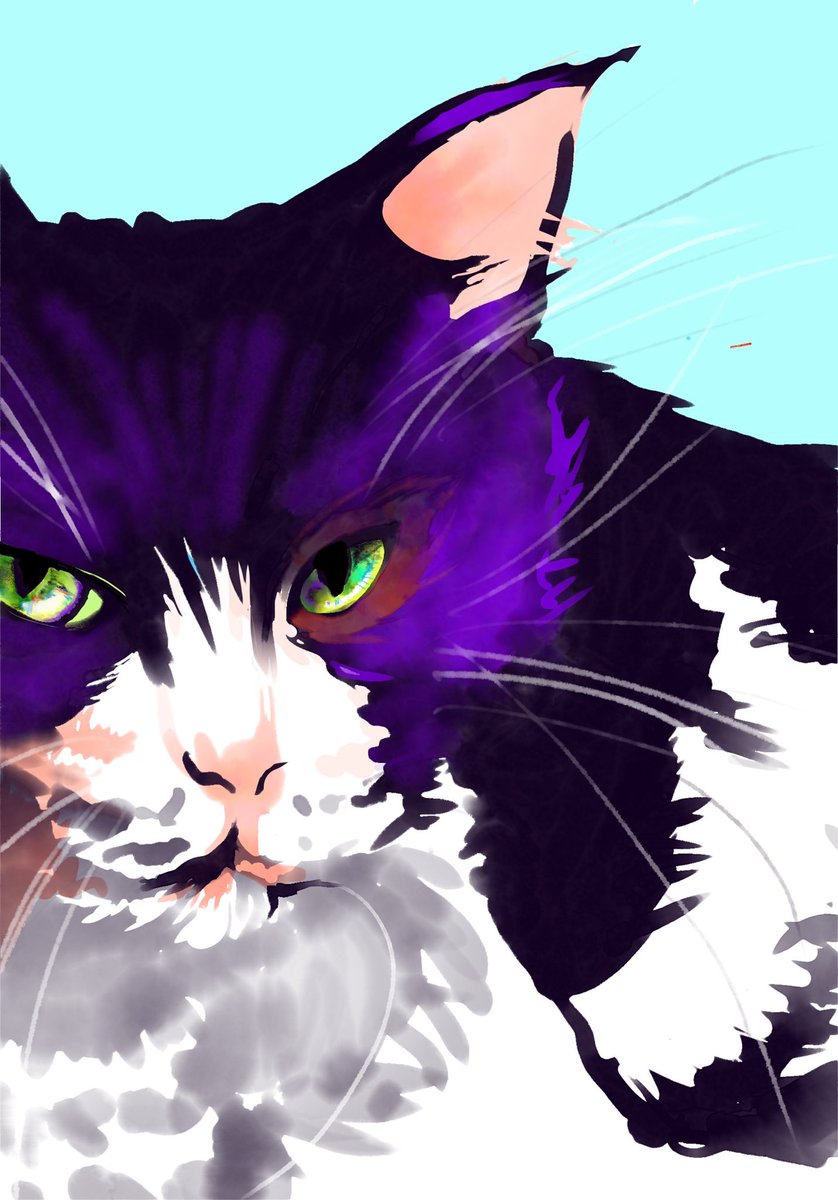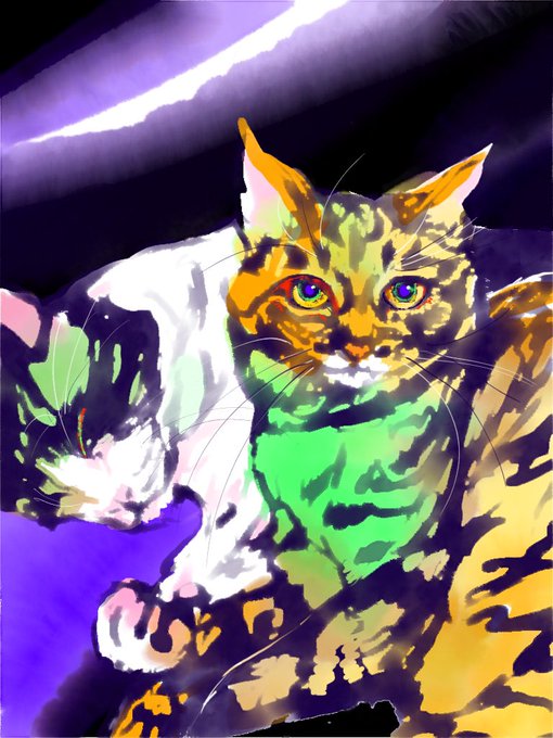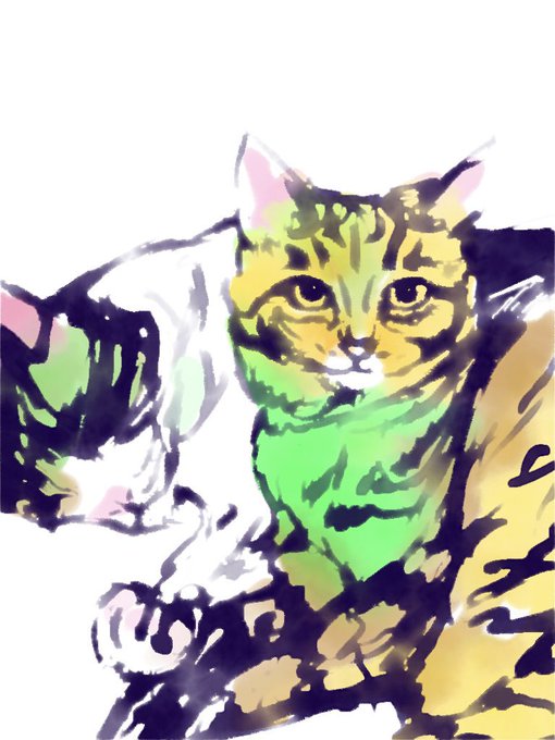 キジトラのチャチャはすぐ逃げるのであんまり描けない ハチワレばっかりになるのはハチワレのモモが私の家庭内ストーカーなおかげ #AdobeFresco #猫のいる幸せ #絵描きさんと繋がりたい #猫好きさんと繋がりたい #イラスト #みんなで楽しむTwitter展覧会