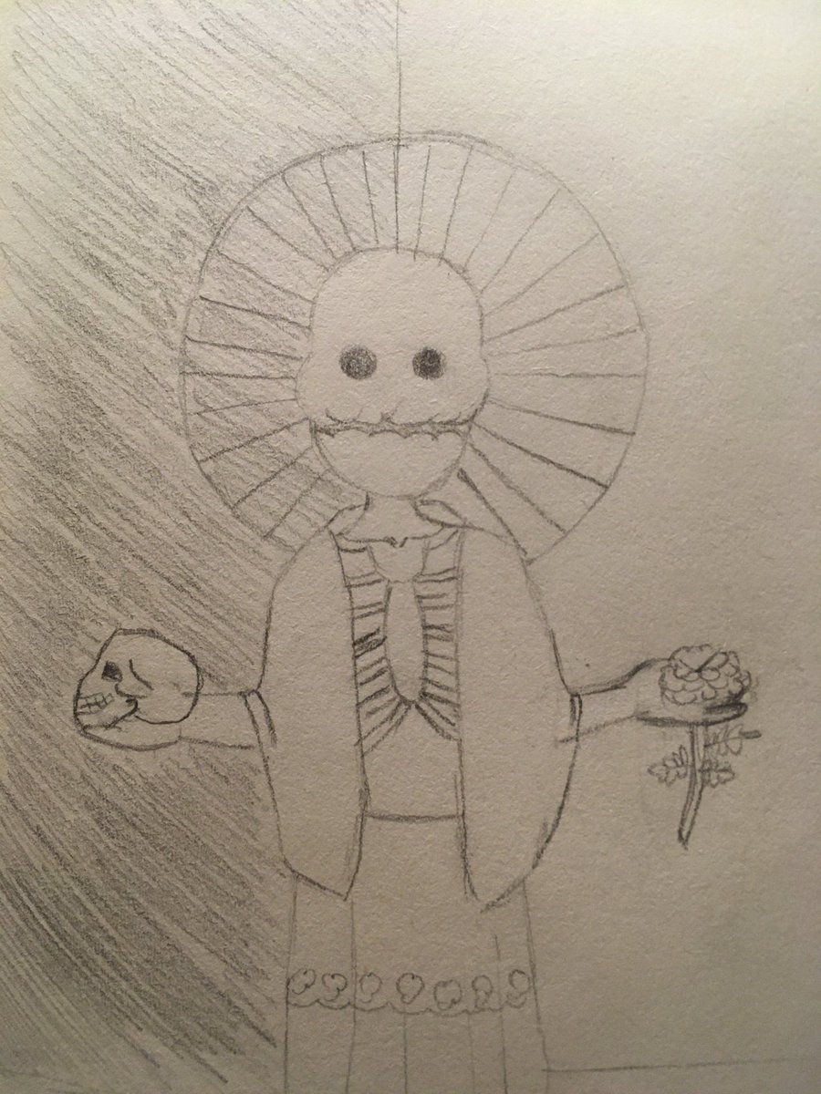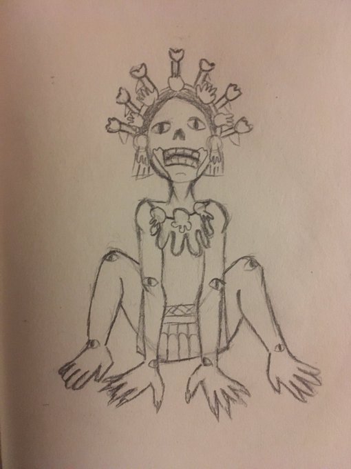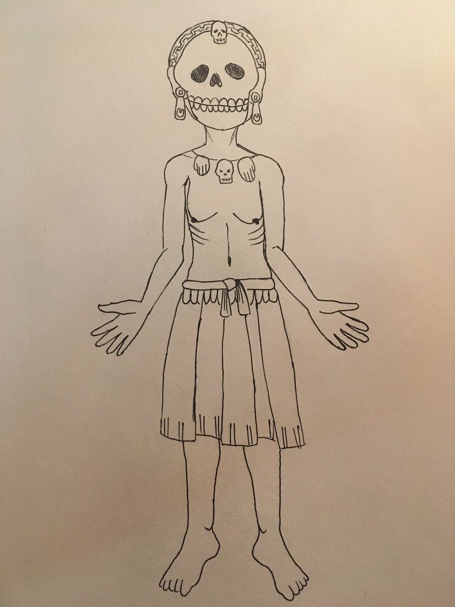 I didn’t like this draw but i don’t have any time and it’s #inktober2020. She is Miquiztlin, and she is the goddess of duality, she is between life and death.
