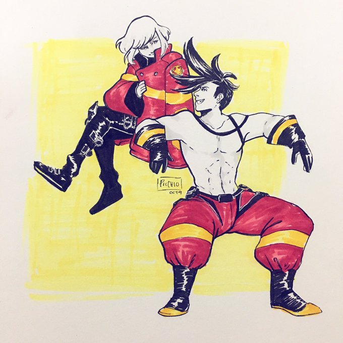 Today’s #Inktober2019 ! I love them and I love Lio in his boyfs big jacket :’) #inktober #galolio #LioGalo #PROMARE #liofotia #galothymos #プロメア