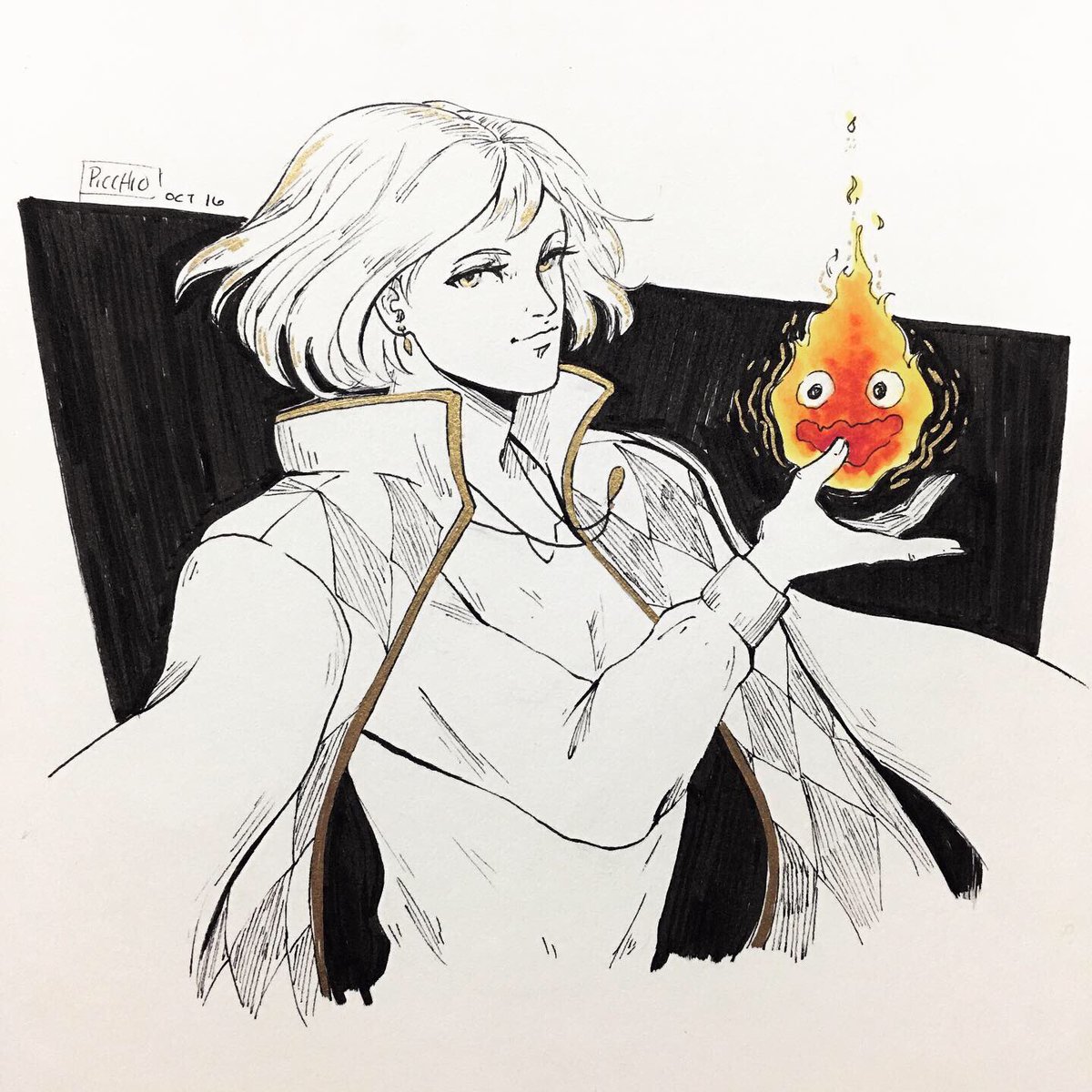 Here’s my #inktober from yesterday! I love Howls movie castle so I decided to draw him 💖 #inktober2019 #studioghibli #howlsmovingcastle