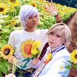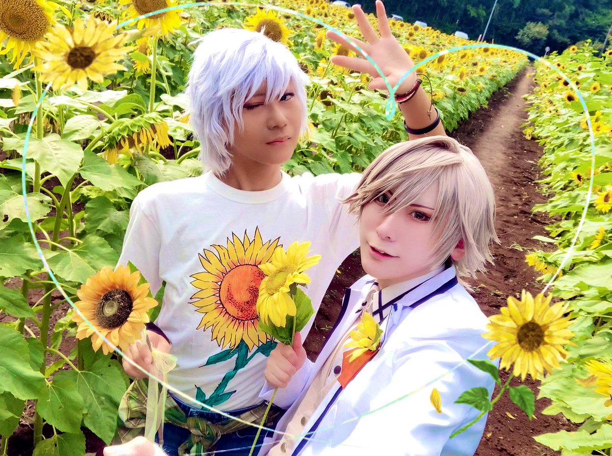 ⚠️コスプレそくほー! 🎾🐰のサマバレ衣装でひまわり撮影行ってきました🌻🌻🌻 灼熱のひまわり畑楽しかったよ😆👍 ツーショは後で♡ 入江→らくと 君島→ひづ