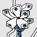#drawtober #artober Day 8 Another demon, Madeus Oculus. This one is the head of a multitrillion tech giant and has invented every app and electronic device currently in use. He knows and sees everything that happens in his domain