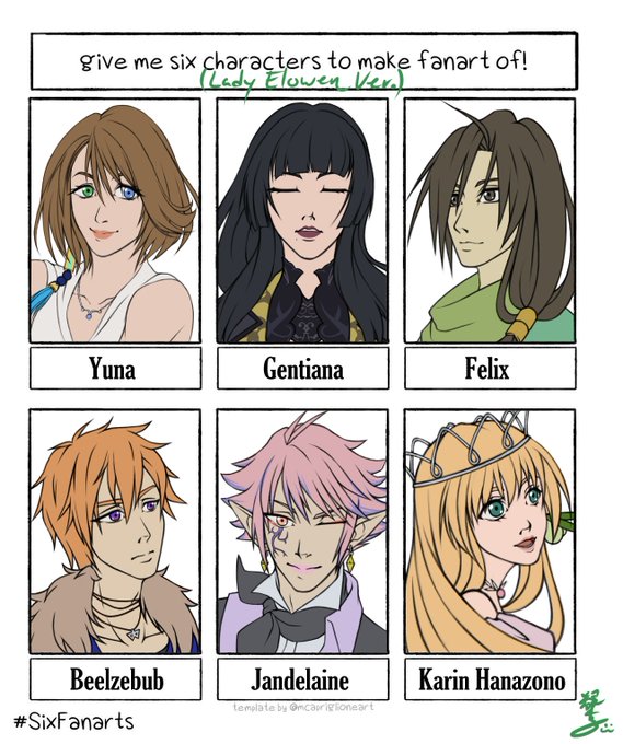 Completed my first #SixFanartsChallenge recently! Thank you to everyone who submitted a character, I had so much fun working on this challenge! I've tagged those who requested someone below.💚 #Fanart #SixFanarts