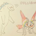Not confident enough to do an action shot so here's the after of a collision (idk why this pair became a thing but it's cute) Day 17: Collision #inktober2021 #インクトーバー2021