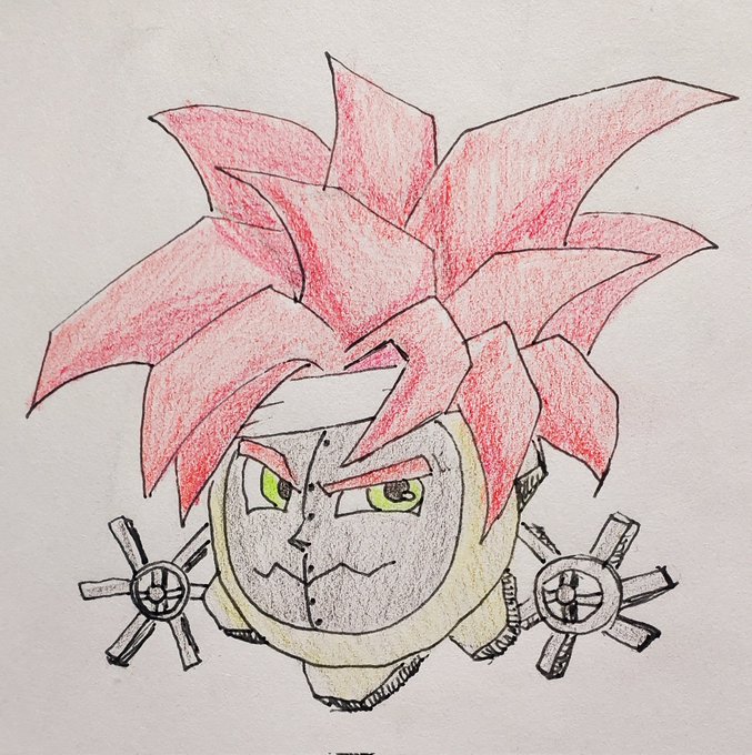 Day 30: Gear Was planning on skipping all Sunday themes, but a channel point redeem happened to coincide with today's theme. A metal gear (Hagurumon) ... and Crono. Cuz why not? 😁 #inktober2022 #Day30 #digimon #chronotrigger