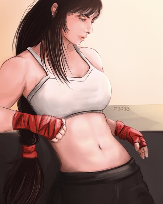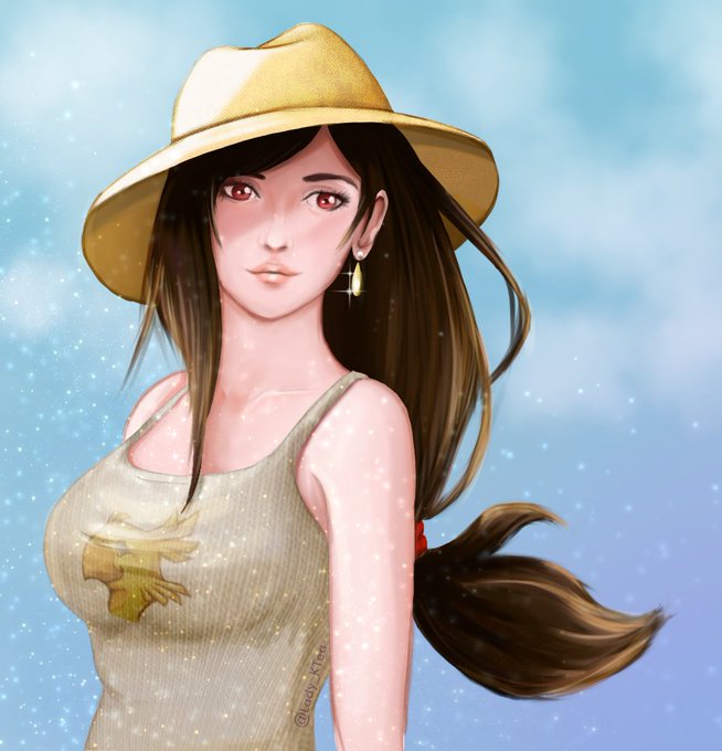 Tifa Lockhart in a chocobo tank top. Summer look 🙂 #tifalockhart #digitalart #fanart #clipstudiopaint