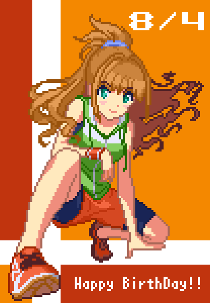 日野茜ちゃん、どうかこれからも私の太陽でいてください……おめでとうございます!!いつものドット絵お祝いです、ボンバー!! #日野茜爆誕祭2020 #日野茜生誕祭2020 #日野茜爆誕祭ボンバータイム