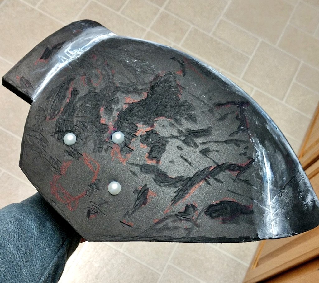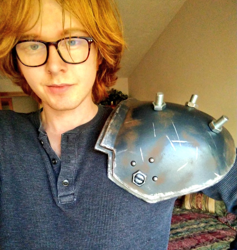 Well, the #CloudStrife pauldron is "done" (Probably gonna weather it a bit more, like the bolts and make the scratches look better) #FF7R #cosplay #FinalFantasy7Remake