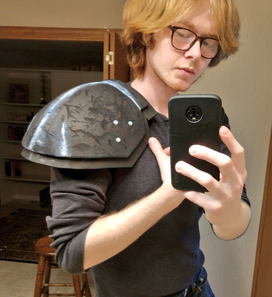 Waiting for the buster sword foam to get here, so I've been working on the shoulder pauldron. Still pretty rough, but it's taking shape! 👀 #FF7R #cloudstrife #cosplay