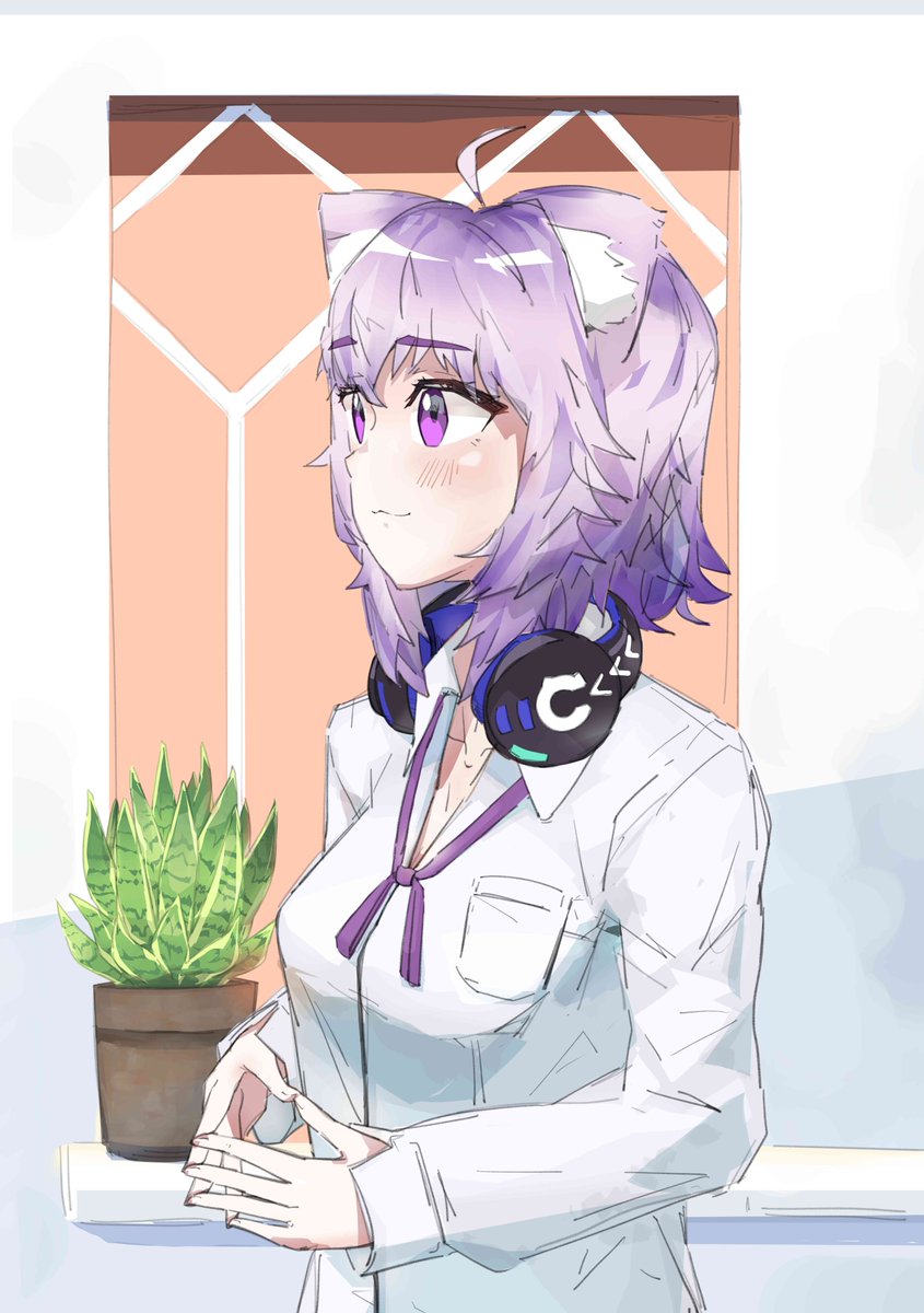 17 118 2022-10-12 窓`植物` おかゆの横顔 #絵かゆ #猫又おかゆ #illustration #絵描き #ホロライブ好きと繋がりたい #ホロライブイラスト #おにぎりゃー 22/11/11 10:00