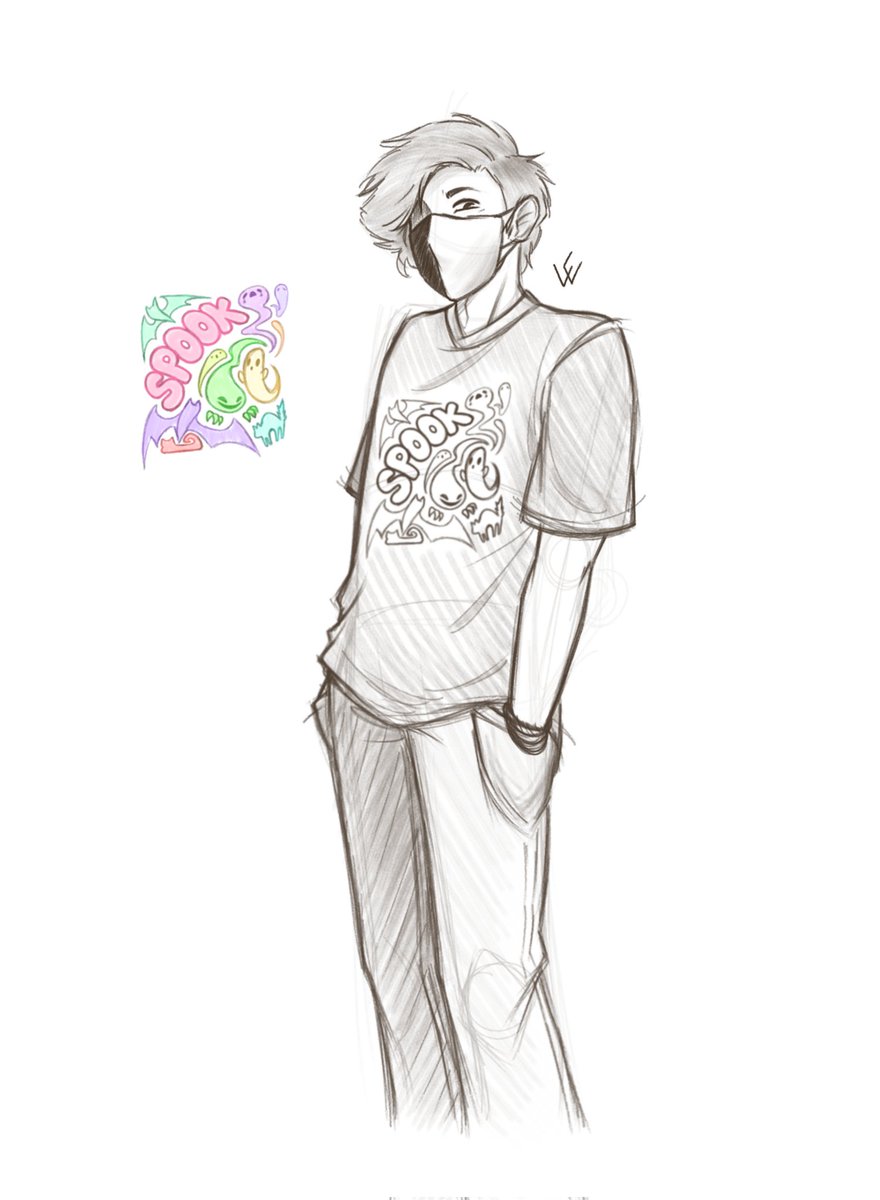 Here, have a Ranboo doodle with a shirt I saw in a dream last night :3 Lol I don't fully remember what it looked like, but I just know "SPOOK" was on it, it was Halloween/ghost themed, and it was pretty colorful. : Tags - #ranboo #ranboofanart