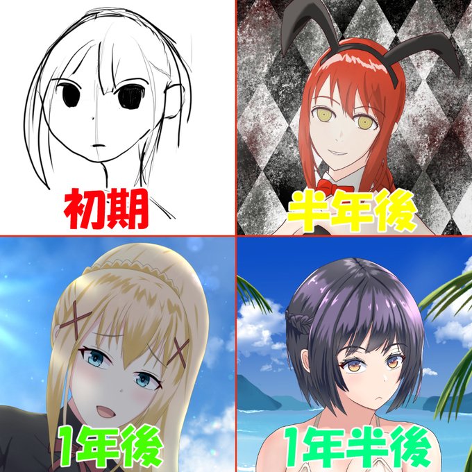 1 9 絵が描けなかった人間が1年半でどのくらい描けるようになったのか。顔だけで比較してみた。 #画力変化ビフォーアフター #成長してると思ったらRT #イラスト 22/09/03 13:58