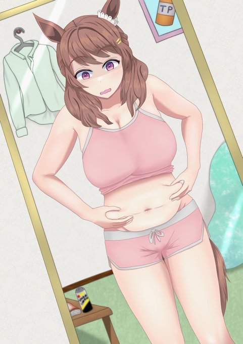 30 126 トレーナーさんとデートの約束をし、浮かれていた最中にふと鏡を見て自分の姿に絶望するライトハローさん #イラスト #ウマ娘 #ライトハロー 22/09/13 00:03