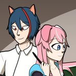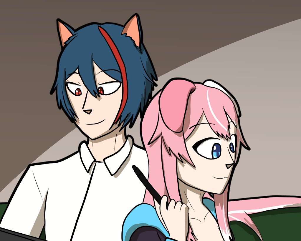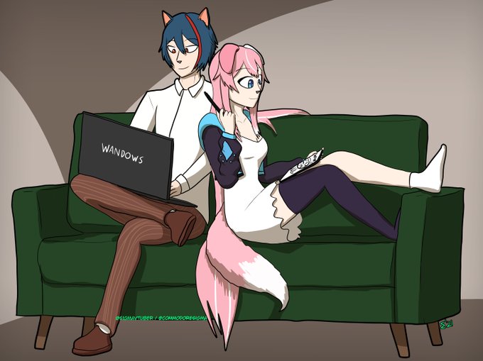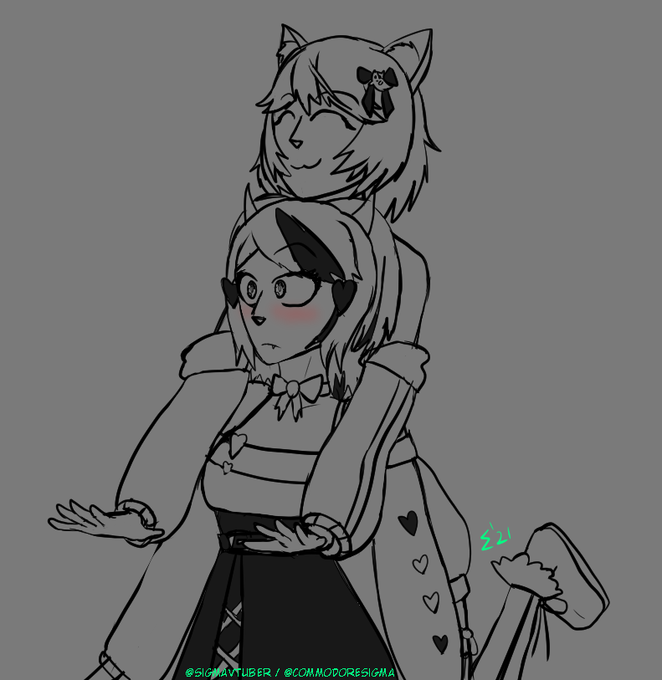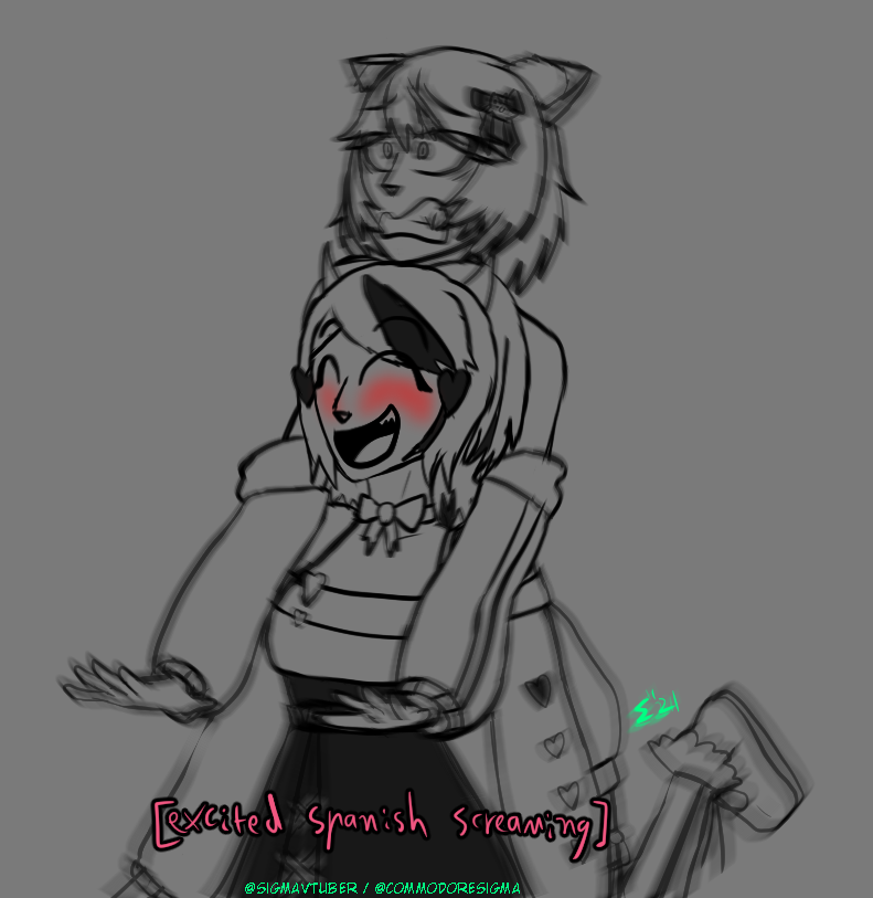 Silly thing what I sketched. Nyanners resting her head on Ironmouse's and Ironmouse getting excited about it. These two are adorable and loads of fun to watch whenever I can catch one of their streams. #nyanart #ironmouseart #vshojoart