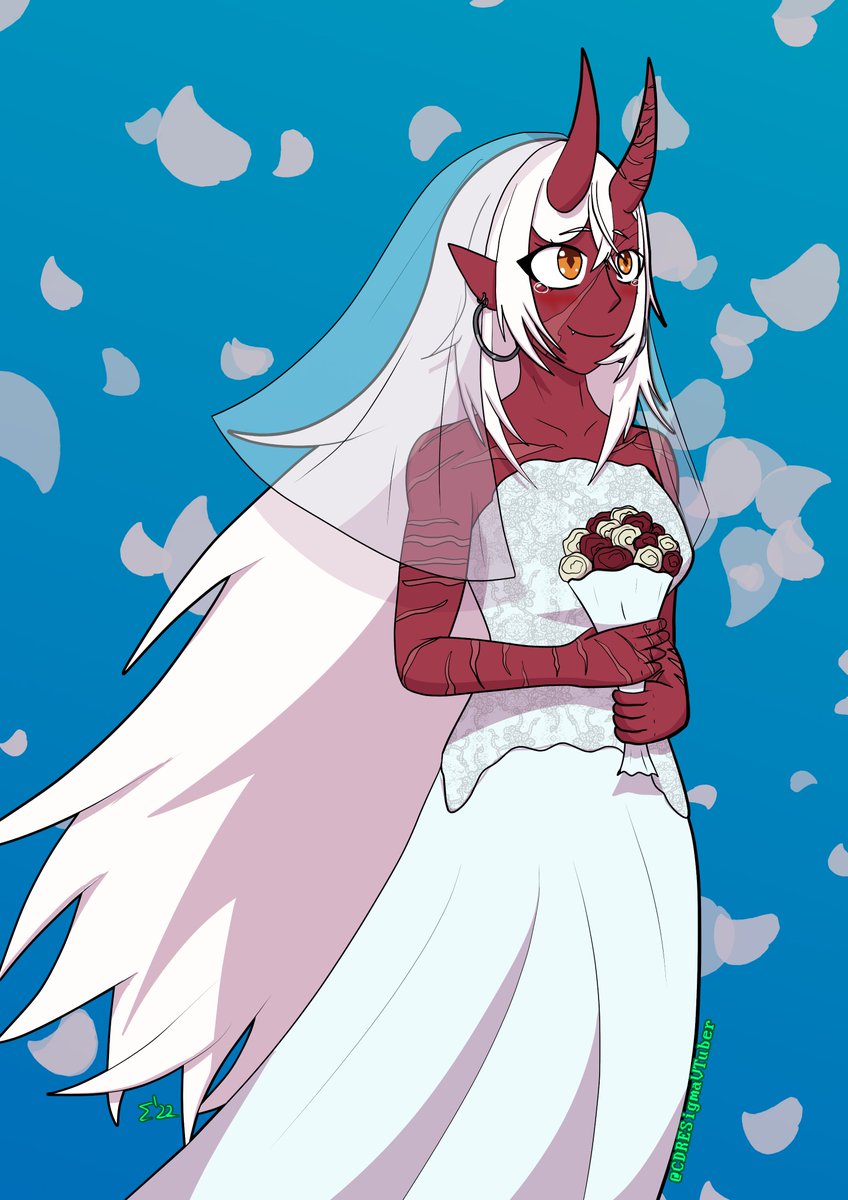Heard that Yocci (@/yoclesh) was getting married, decided to offer my congrats through art. and also i wanted an excuse to draw her and/or a wedding dress lol Congratulations, Yocci, hope you and your partner have a wonderful future c: #akumillust #vtuberfanart