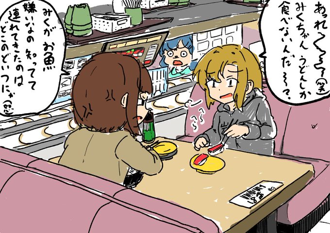 167 491 お昼ご飯じゃんけんに敗北した前川みくの絵です(回転寿司でうどんを注文する前川みくの絵です) 22/10/01 00:19