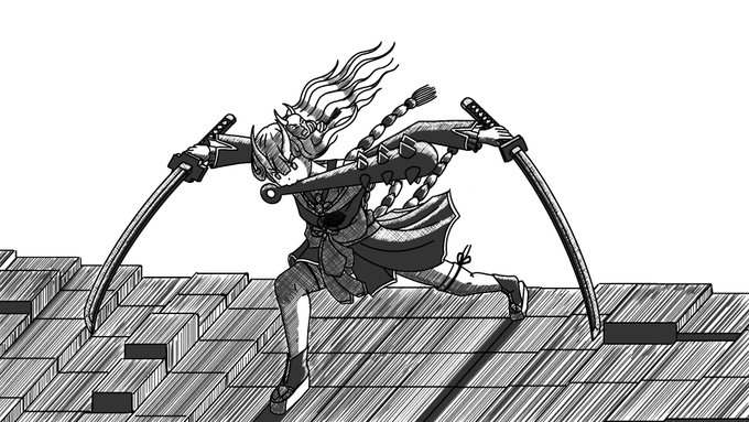 Spent too much time from a funny idea. Because of that one HoloGraffiti episode, and the HololiveALT PV, I now present to you: Nakiri Ayame's Three-Sword Style, O N I G I R I ! ...What do you mean the Kanabo isn't a sword? Zoro did it with a scythe! :^) #百鬼絵巻 #hololiveALT