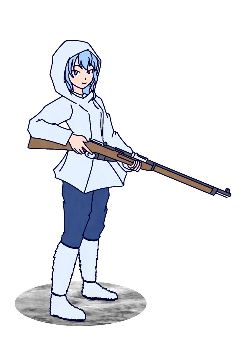 #ほしまちぎゃらりー Illustration Countdown to Hoshimachi Suisei's Birthday - Day 19 Now I Introduce Suimo- er... Simo Häyhä. The absolute unit of the Winter War that has reportedly claimed 500+ kills with his Mosin 28/30... with only his ironsights.
