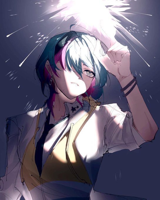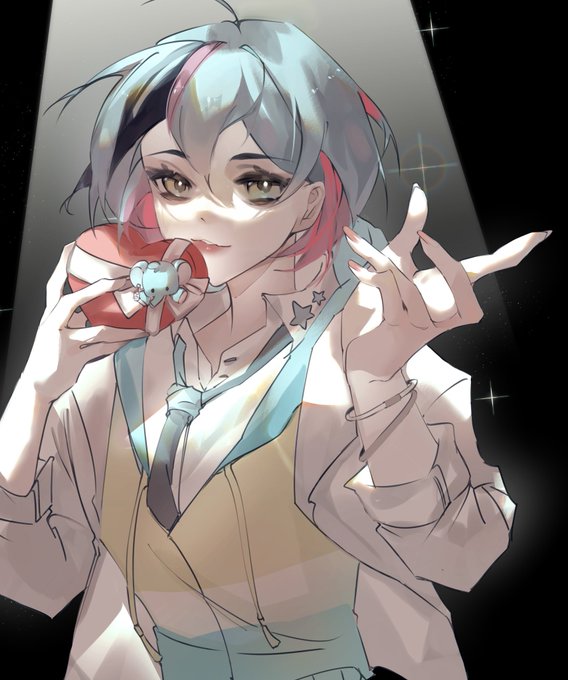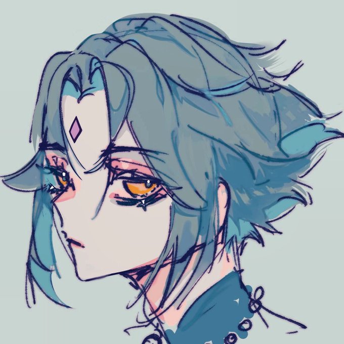 To put in context Mysta "borrows" Vox's earing I really want a refreshing feeling in the drawing, I hope it kinda works? #MystaRias #MystArt #FoxAkuma