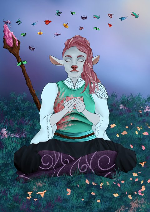 Another Yasha update. All that's left now is picking colours for the flowers and adding colour, texture and shade to everything. #yasha #yashanydoorin #mightynein #mightyneinfanart #criticalrole #criticalrolefanart