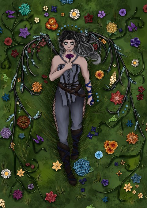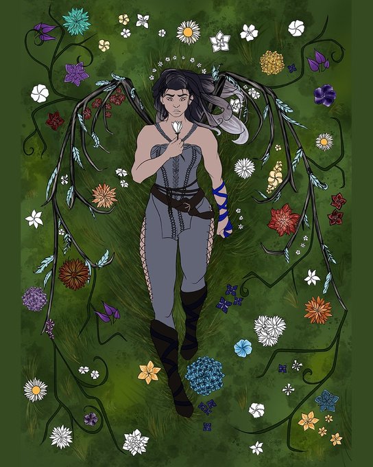 Yasha update. I've added some details to her clothes, adjusted her pose and started adding flowers. #yashanydoorin #mightynein #mightyneinart #mightyneinfanart #criticalrole #criticalroleart #criticalrolefanart #digitalart