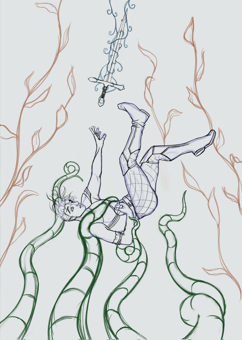 Fjord update Made some changes to the armour, tentacles and sword after posting the sketch. I've also started adding colours to figure out my palette. Now I just have to make it all come together nicely. #fjordstone #mightynein #mightyneinfanart #criticalrole #criticalrolefanart