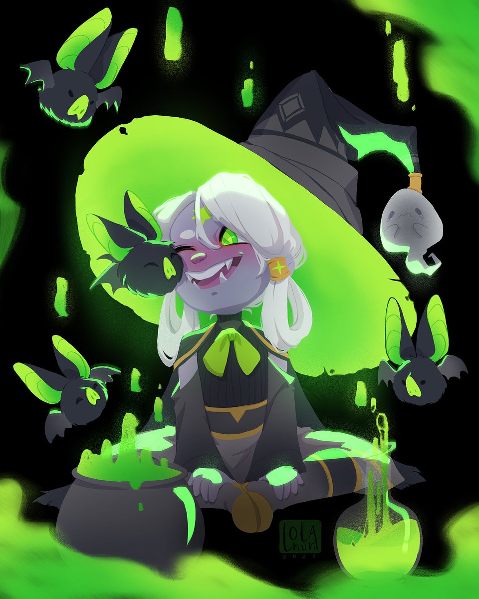 ✨07 - Bat Witch✨ This is so chaotic green… and I love it 🦇🦇🖤 #witchtober #drawlloween #drawtober