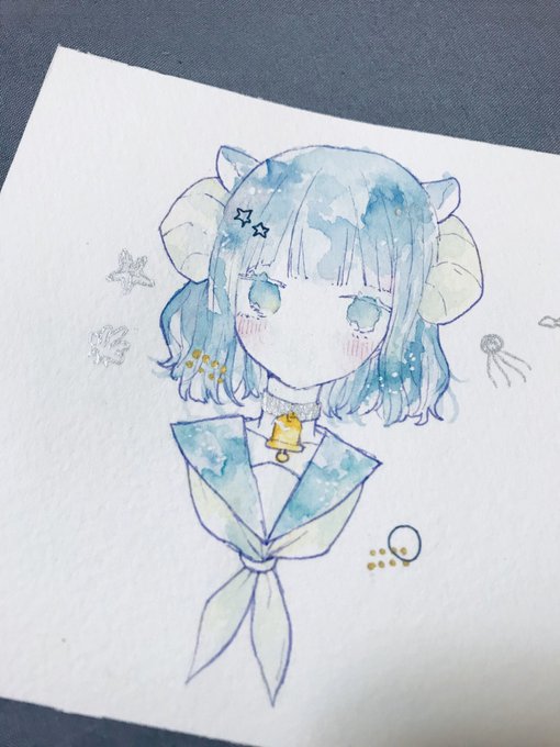水彩でらくがき🐏🔔🐠