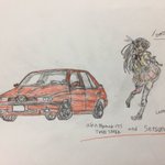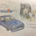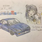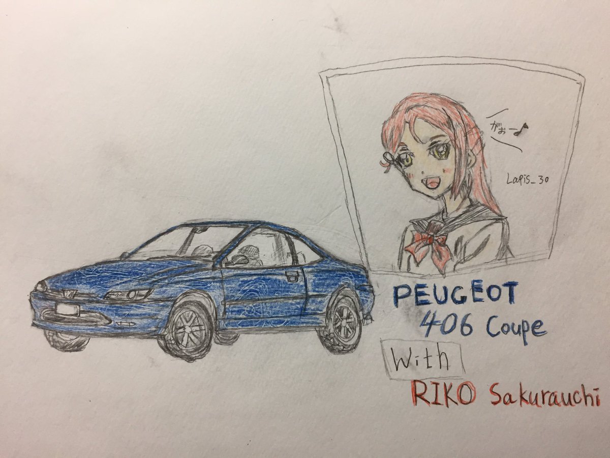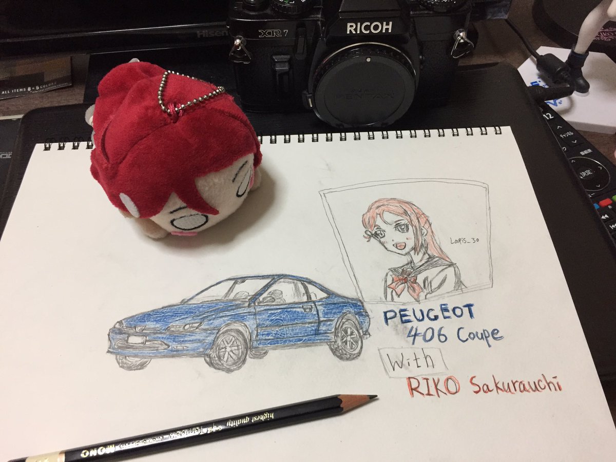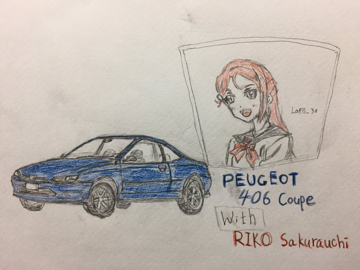 趣味のアクセル全開で描いた🚗🏁 プジョー406と日産R31スカイラインGTS-Rそしてよしりこ😈🌸 #よしりこ #ラブライブサンシャイン