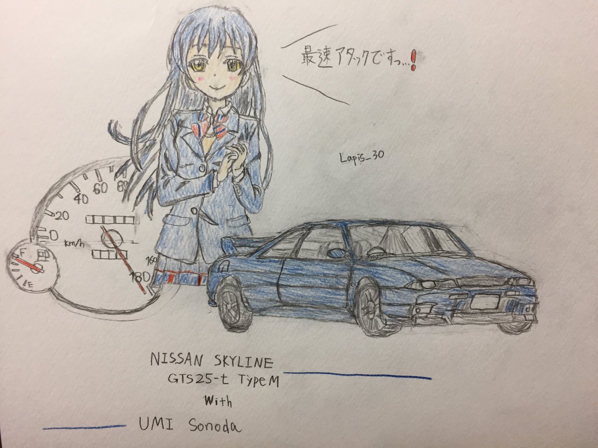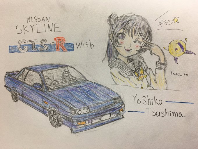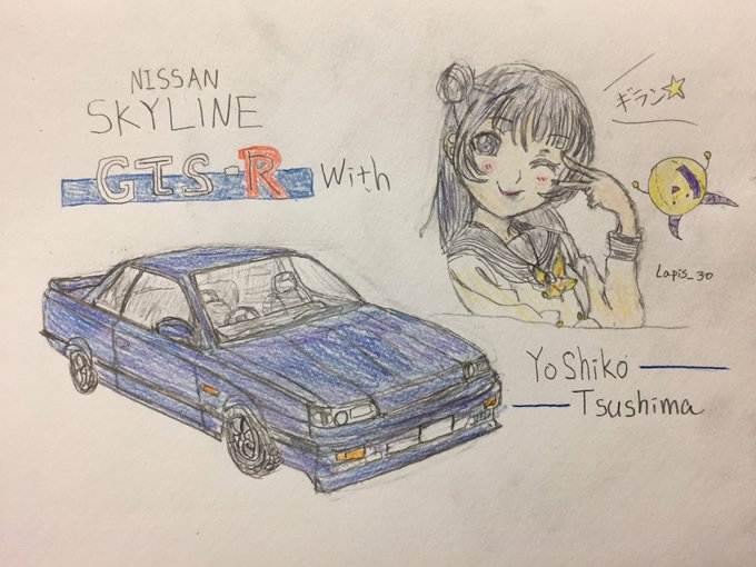 5 5 趣味のアクセル全開で描いた🚗🏁 プジョー406と日産R31スカイラインGTS-Rそしてよしりこ😈🌸 #よしりこ #ラブライブサンシャイン 18/12/28 04:45