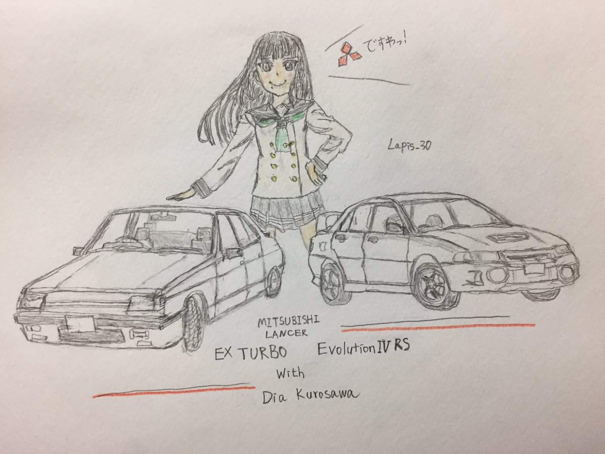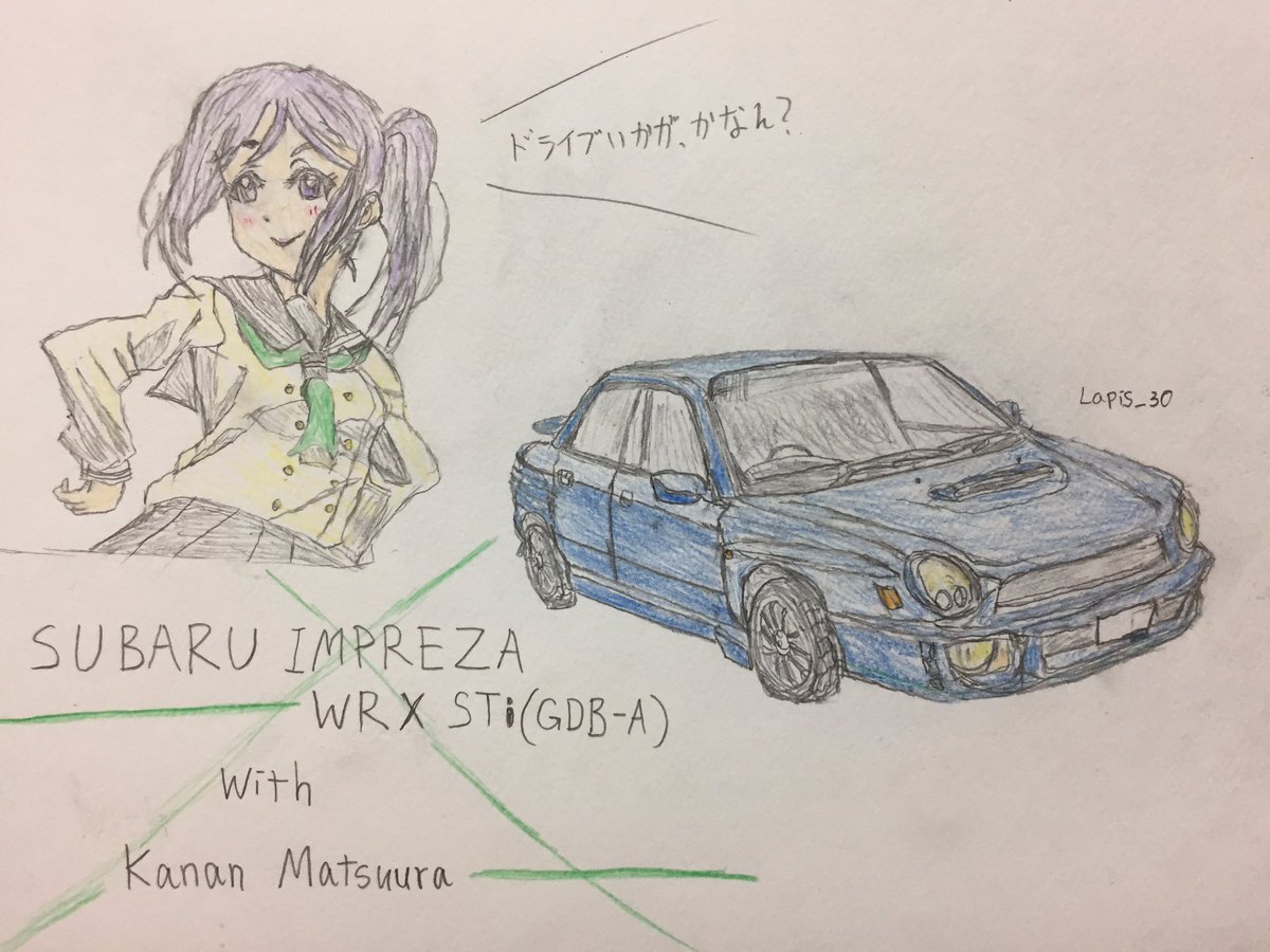 5 11 前に描いたイラストで。個人的に果南ちゃんにはスポーティーなスバル車が似合うんと思うんですよ…特に丸目のインプレッサとか。それはさておき、果南ちゃんハッピーバースデー‼️🐬 #松浦果南生誕祭2019 19/02/10 00:02