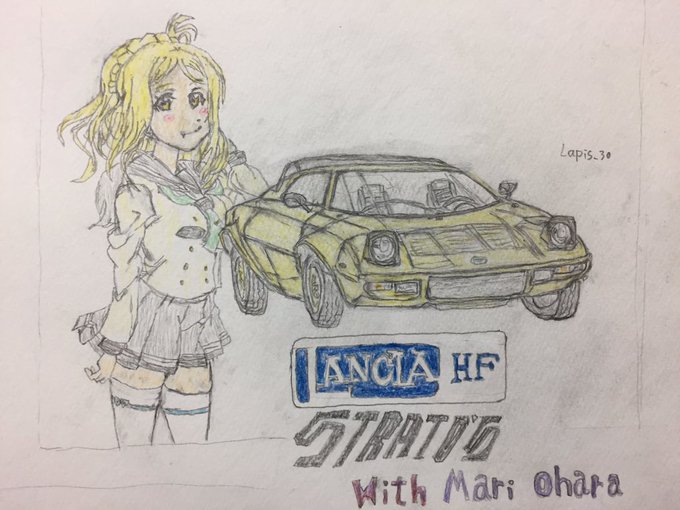 5 22 最近バイクばっかり描いててこちらを全く進めて無かったのと、劇場版の舞台がイタリアという事で…完成❗️ LANCIA STRATOS With 小原鞠莉こと…シャイニー‼️✨ 19/01/12 03:34