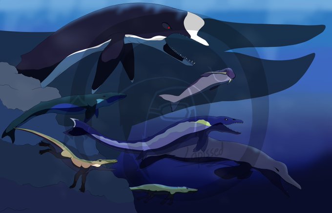 Whale, whale, whale...it's #NationalWhaleDay, and what better way to celebrate than a piece dedicated to their bizarre evolution? Featuring some of my favorite prehistoric cetaceans and cetacean ancestors; genus names will be listed in the replies. #paleoart