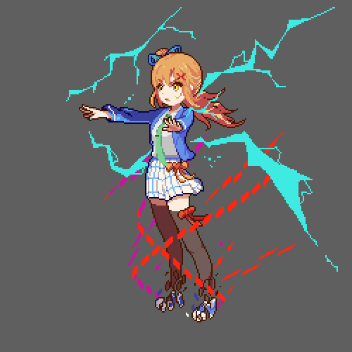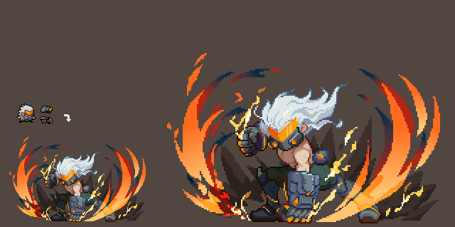 The defense pose of Zhaoming. he control the particle, combine them turn into a shiled. #RobinsCage #pixelart #ドット絵