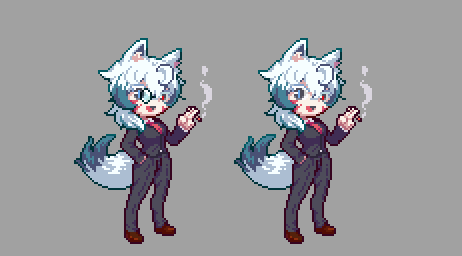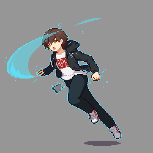 The attack pose of Zhaoming. the blue light stuff is the thing he control. #RobinsCage #pixelart #ドット絵