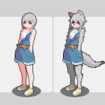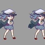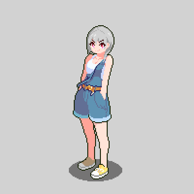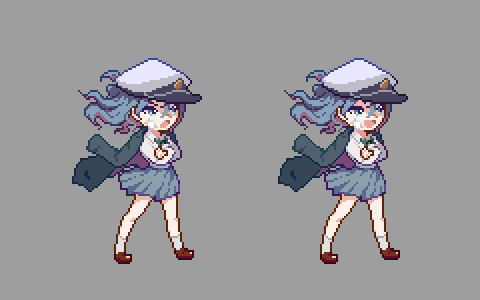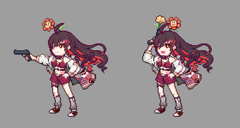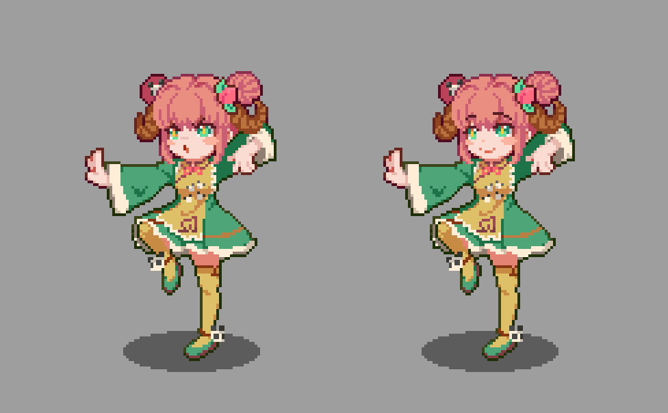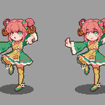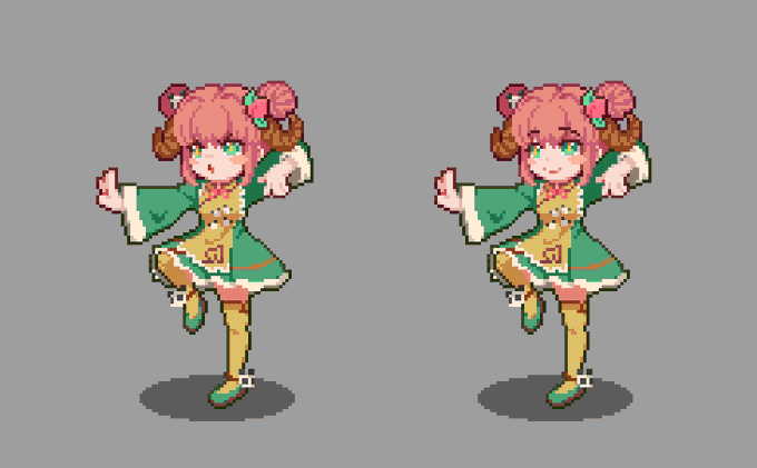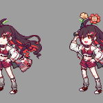 Defense pose of Momoko. Three pictures(idle atk def) of Momoko are posed,could you find out the guess why her feet are broken?ᕕ( ᐕ)ᕗ (hint:data like things around her in the idle, no shadow, glitch) #RobinsCage #pixelart #ドット絵 #indiegame