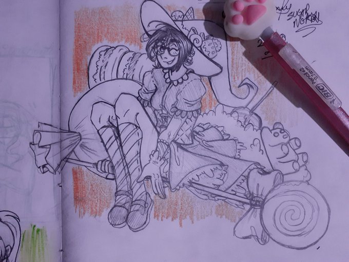 Dias 1 e 2 do #cutetober2021 da @Naavaz_art O primeiro dia foi minha personagem do quadrinho Catarina de bruxa dos docinhos, o segundo dia eu precisei desenhar a Olivia (protagonista) vestida de Sailor Moon xD #inktober2021 #Inktober #Cutetober