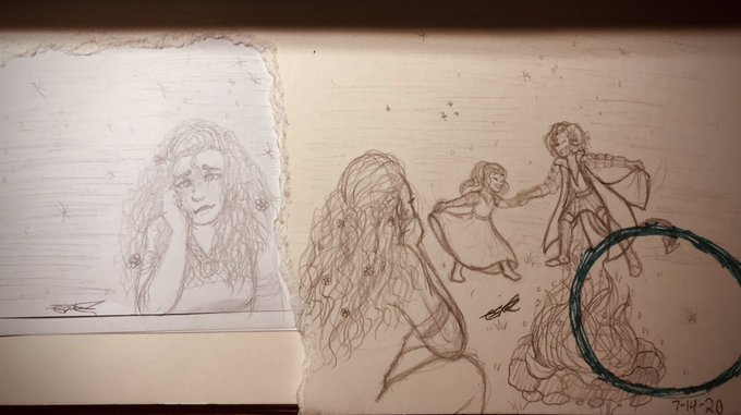 🌸Oh it’s hard ..to be alone🥀 Some messy concept thumbnail sketches for a bigger project I’m hopefully starting soon💛 she loves him🥺 (He’s dancing with Toya. This is when they were back in the circus) #mollymauk #yashanydoorin #yasha #criticalrole #criticalrolefanart #CR