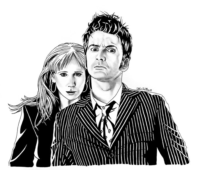 #Inktober2019 Day 4: Donna & The Doctor. Donna‘s always been my fave companion. She really knew how to take him. Also love the brilliant #CatherineTate together with #DavidTennant in everything. #DoctorWho #inktoberday4 #inktober #fanart #TenthDoctor