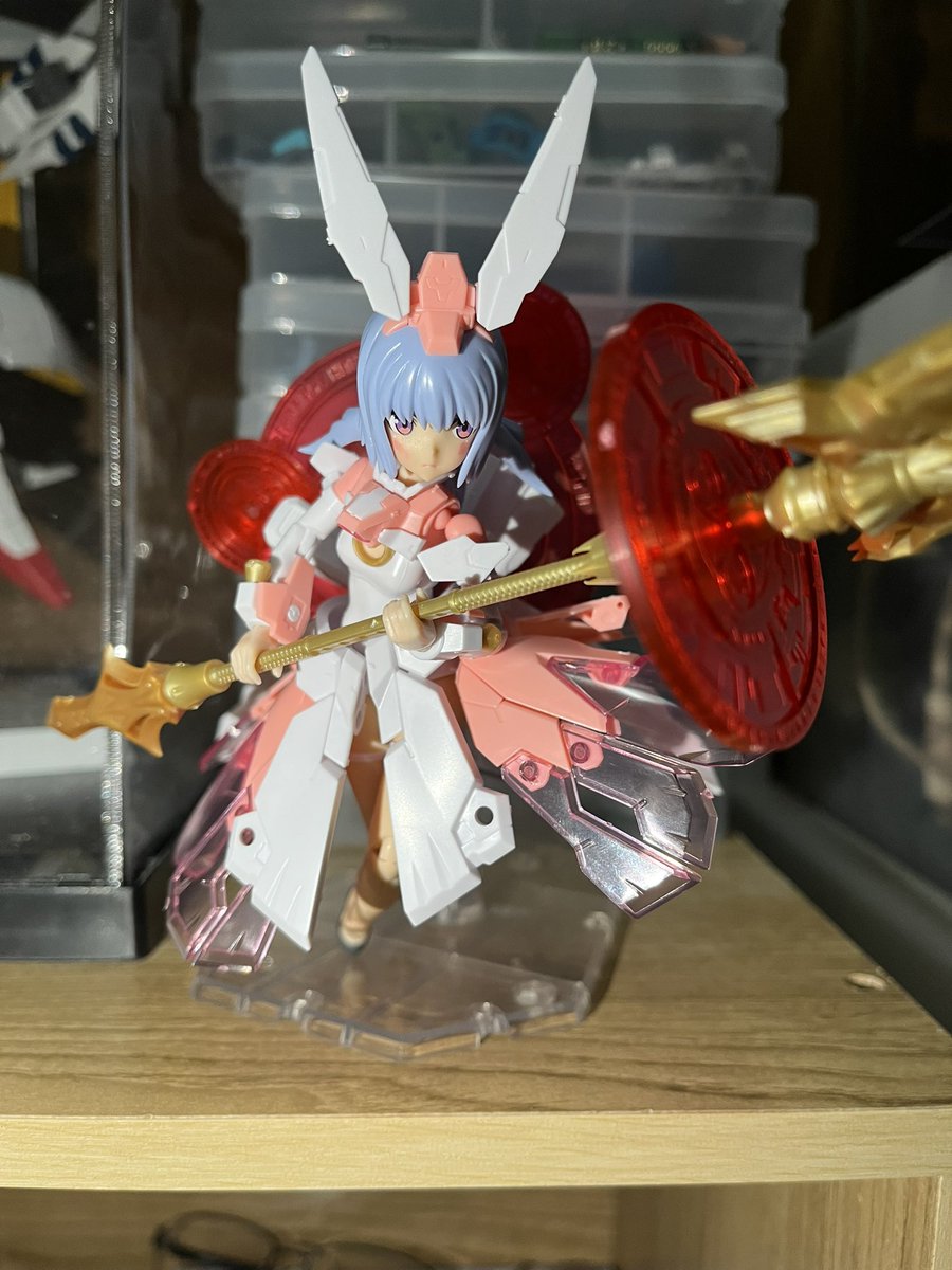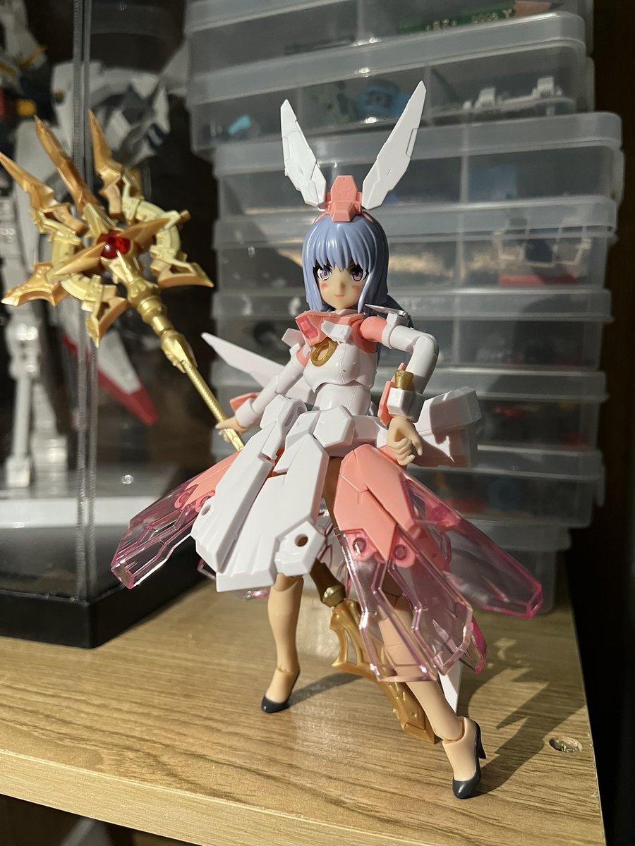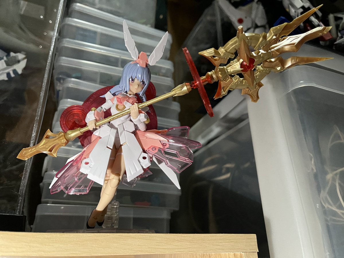 マジカルバーゼラルド完成、可愛いとカッコ良いの両立、可動範囲が広いだけにめっちゃブンドドしたくなるけどそのせいでパーツが結構ポロリしますね。ちょっともったいない_(:3 」∠)_ 女の子にでっかい武器はロマンやなー、めっちゃ好き(*´-`) #フレームアームズガール #メガミデバイス