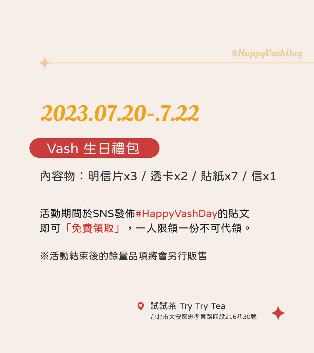 ◤◢◤◢◤ 🍹 Happy Vash Day🍹 2023.07.20~07.22 ◢◤◢◤◢ 明天開始就是活動日啦! 我們用心準備了禮包送給大家~只要發佈貼文就可以免費換取,推薦搭配主題特調飲料增添慶祝氛圍喔🥳… twitter.com/i/web/status/1…